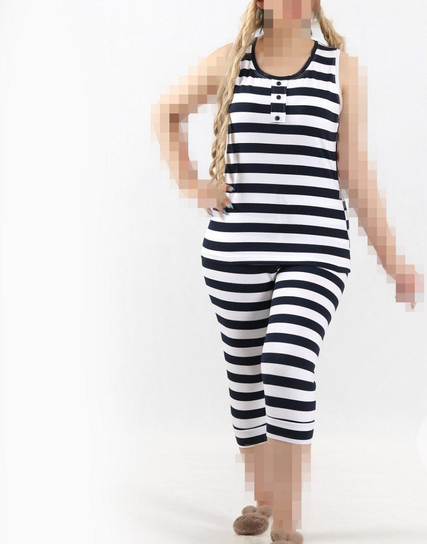 تیشرت شلوارک جلو دکمه راه راه زنانه پنبه لاکرا