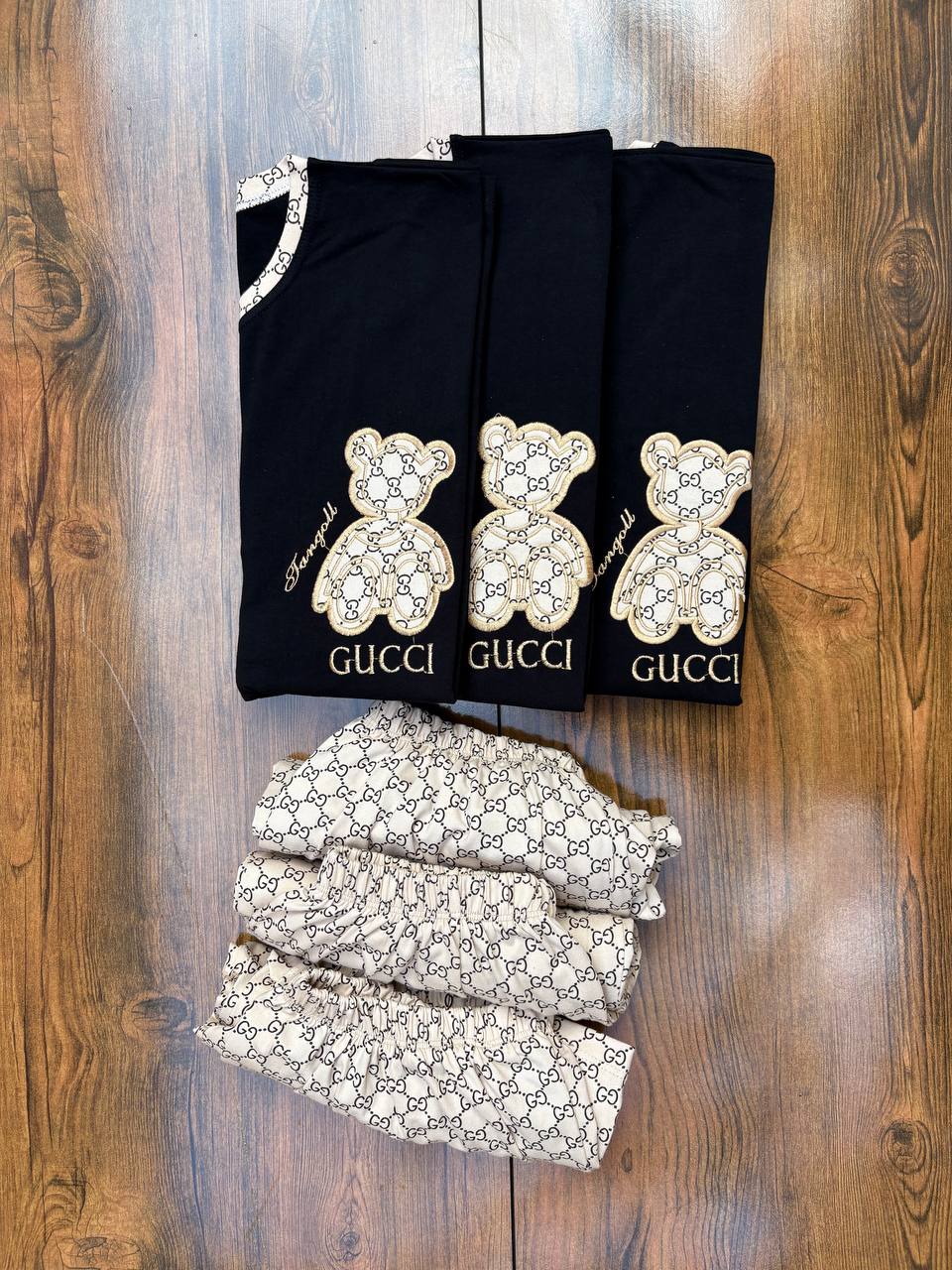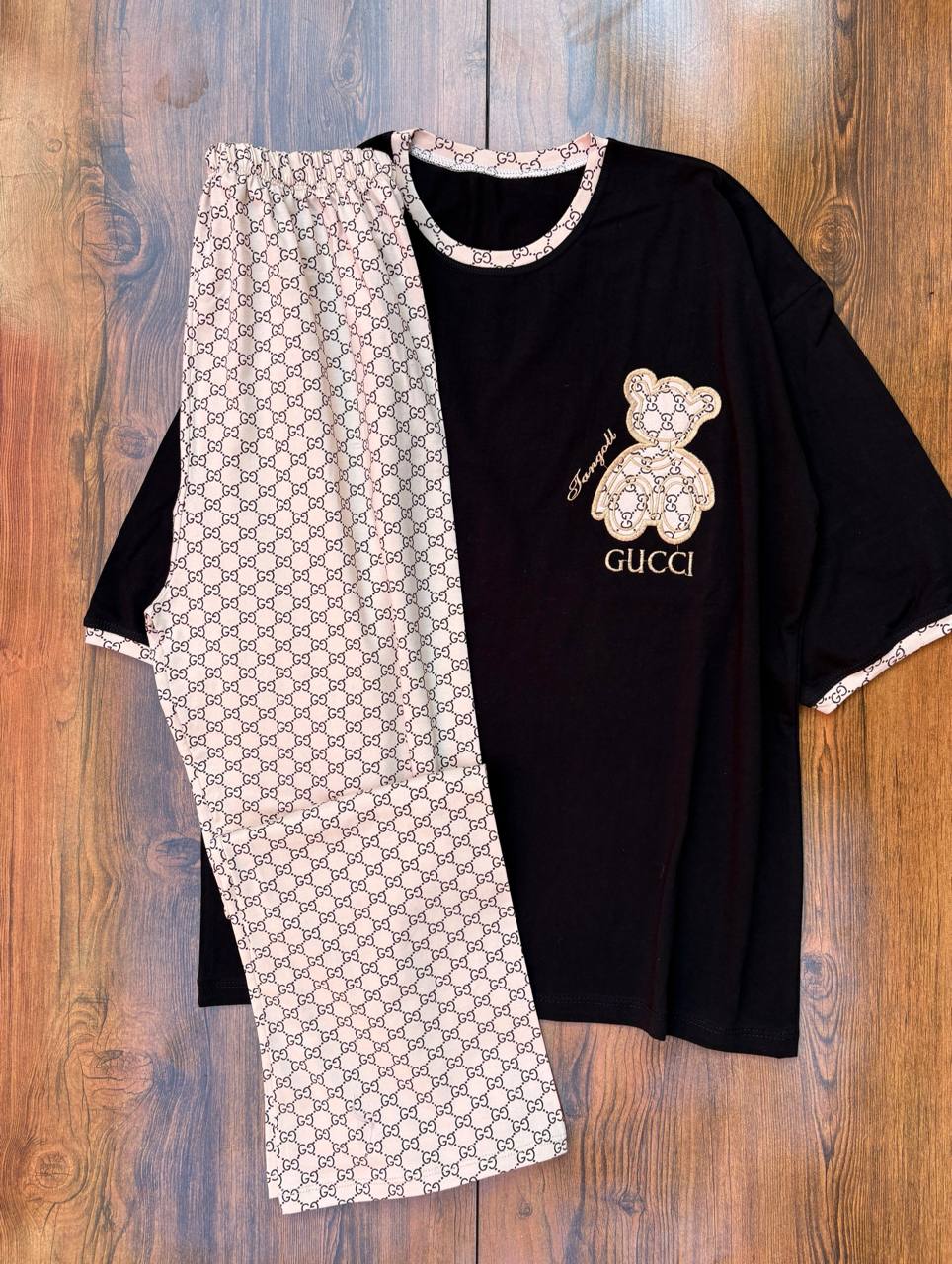 تیشرت شلوار نخ پنبه لاکرا طرح گوچی