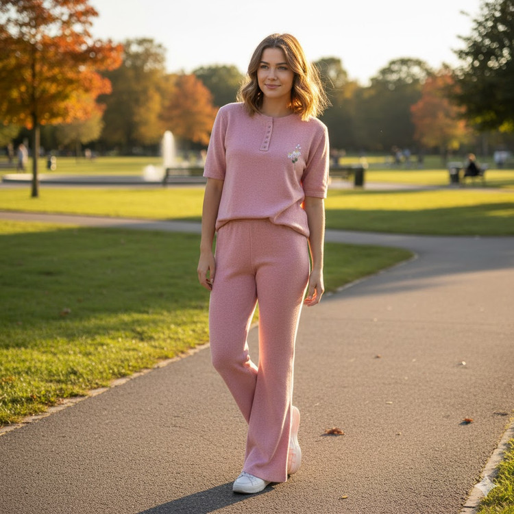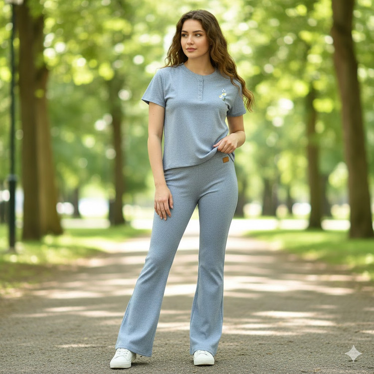 تیشرت شلوار فانریپ کبریتی گلدوزی شده
