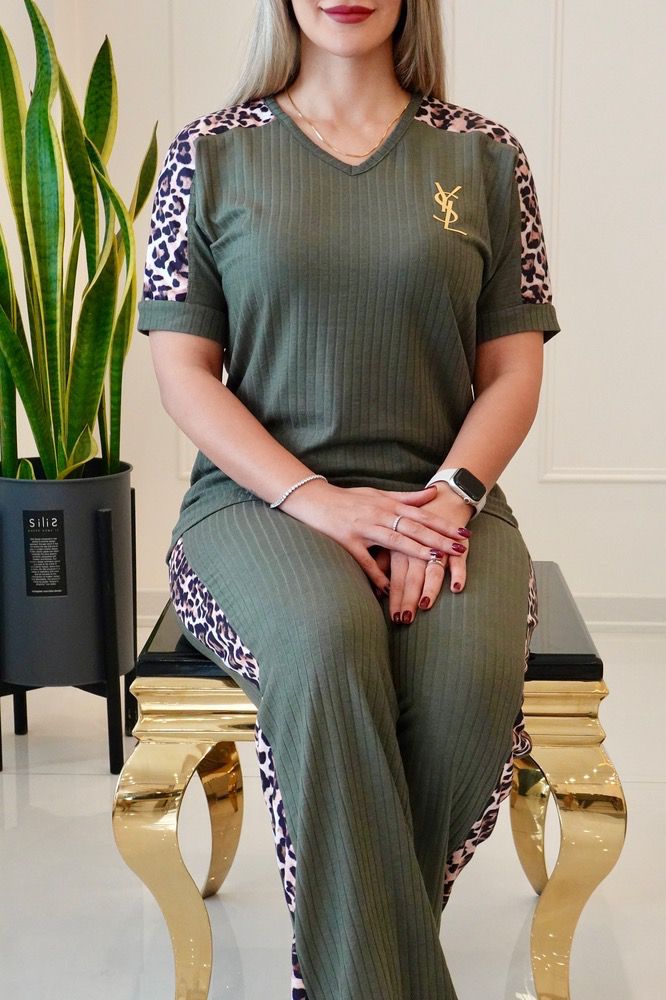 ست تیشرت شلوار آکاردئونی پلنگی زنانه